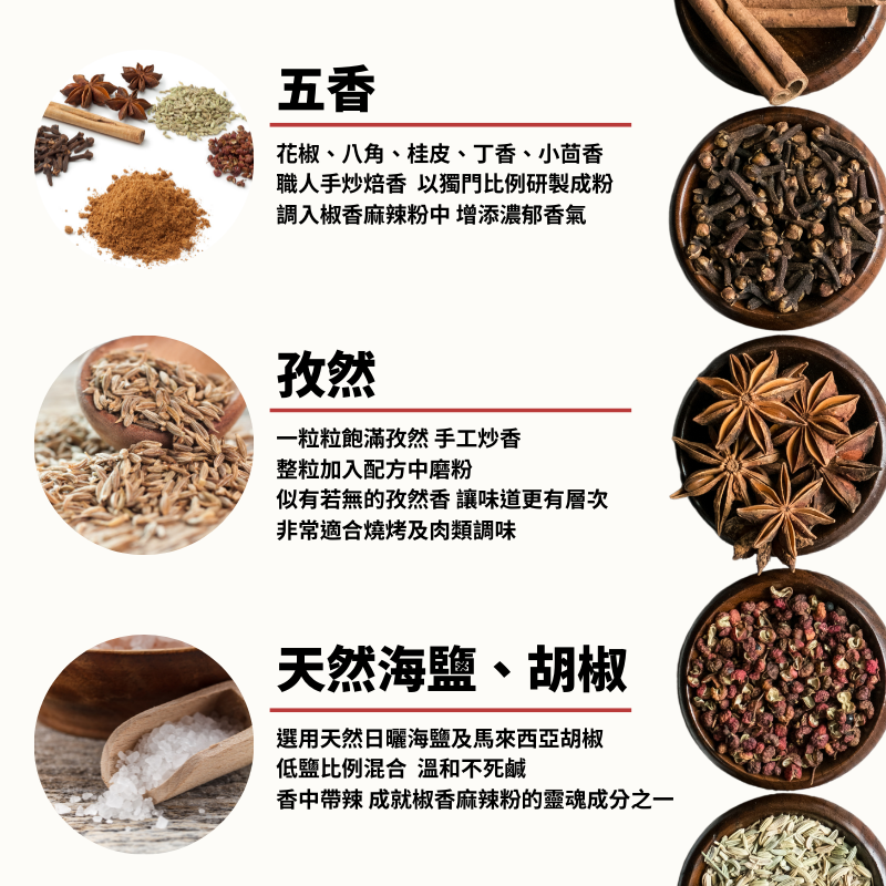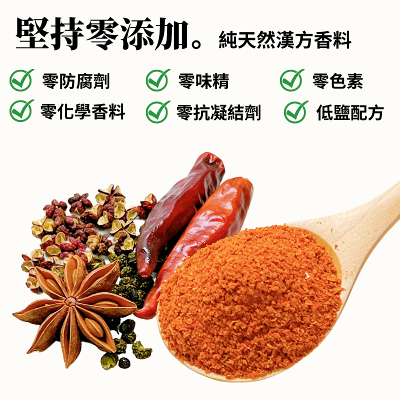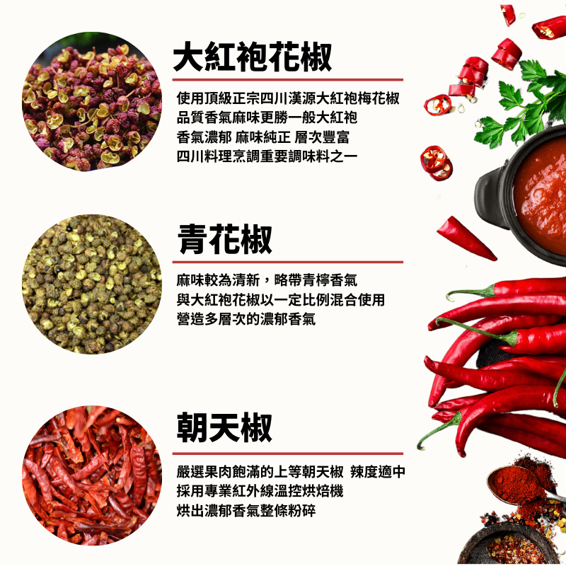 辣度適中 添加頂級大紅袍花椒 手工炒香研磨